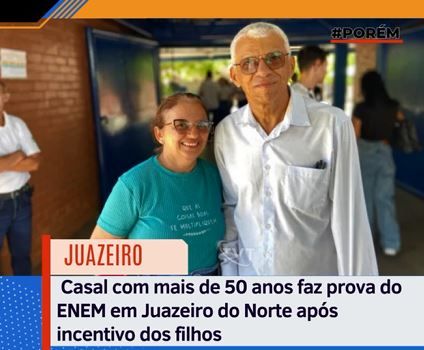 Durante o primeiro dia de provas do Enem 2025 realizado neste domingo (9), em Juazeiro do Norte, um casal de mais de 50 anos chamou a atenção entre os participantes. Edvânia Silva, de 51 anos, e Pedro Alves, de 53, decidiram se inscrever no exame após o incentivo dos filhos, que já cursam o ensino superior.