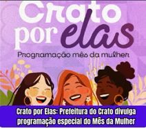 A Prefeitura do Crato, por meio da Secretaria Municipal de Direitos Humanos e Casa da Mulher Cratense e em parceria com com Conselho Municipal dos Direitos da Mulher Cratense, realiza, ao longo de março, a programação "Crato por Elas", um conjunto de ações voltadas à promoção da autonomia feminina, prevenção à violência, fortalecimento da rede de proteção e valorização das mulheres.